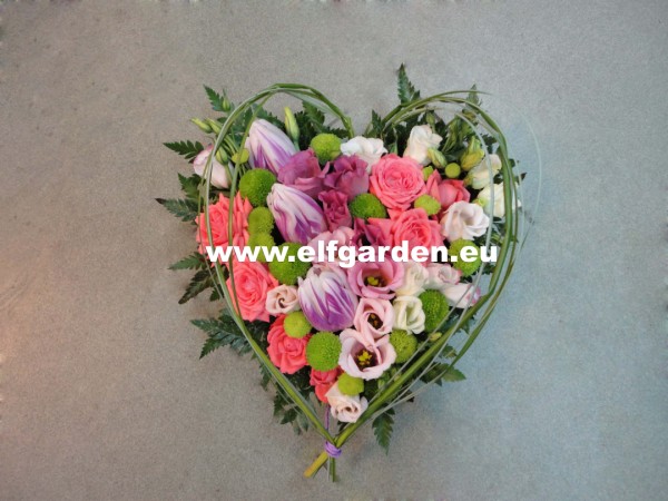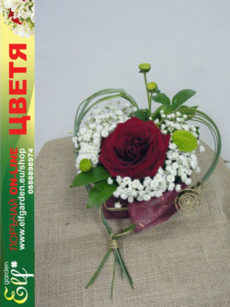 най-желана и най-красива на света. Стилната аранжировка "Сърце от цветя" е подходящо допълнение към подаръка за Свети Валентин.