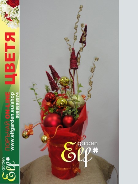 Коледна аранжировка, подходяща за подарък на приятел, колега или специален човек! Дизайнерския стил ще внесе топлина и уют в офиса или семейството Ви! Поръчайте тази аранжировка и открийте магията на Коледа.